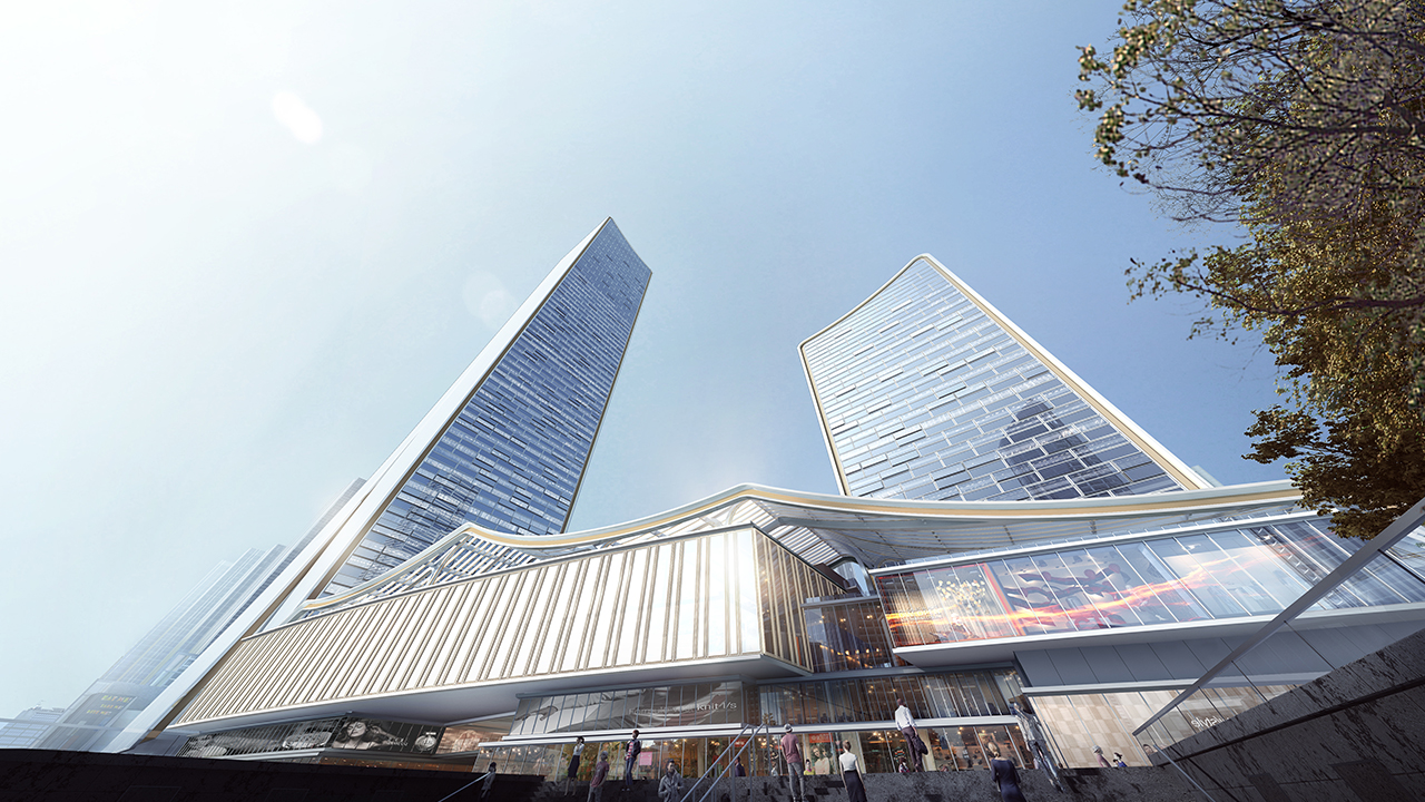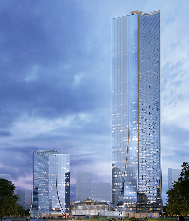 建筑高度:326.1m(65层) 幕墙面积:7.1万m² 项目设计:Aedas建筑设计事务所 幕墙类型:单元式玻璃幕墙等