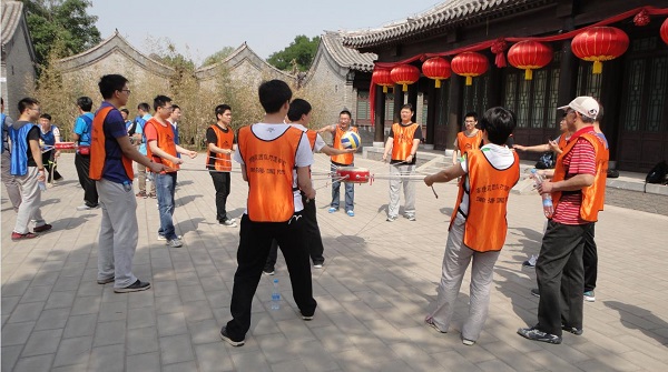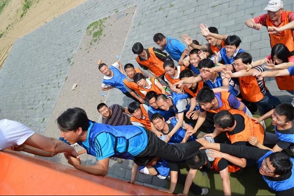 17日早上8点员工们在公司集合出发,经过1个多小时的车程到达拓展活动目的地——怀柔星美今晟影视基地,经过简单休整,接着在教练的指导下,以轻松、愉悦的方式拉开了拓展训练的帷幕。