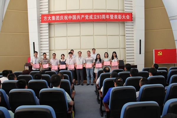 6月30日,中共方大集团党委举行庆祝中国共产党成立93周年暨表彰大会,集团公司董事长熊建明出席会议并作了讲话。会议由集团公司党委书记、副总裁魏越兴主持,集团公司总部和驻深企业全体党员、新党员、入党积极分子参加了大会。