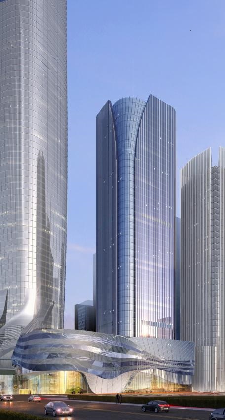 深圳天鹅湖花园一期位于深圳市南山区侨香路,总建筑面积为4.2万平方米,高为120米,主要采用单元式玻璃幕墙、铝板幕墙、铝合金格栅、铝遮阳系统、玻璃栏板、百叶幕墙等幕墙系统。