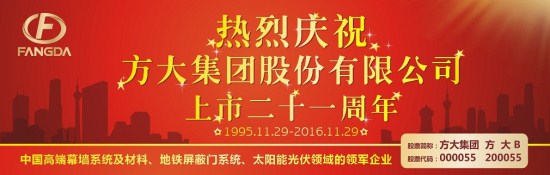 开拓进取,塑造了方大集团勇于创新的独特气质;光荣与梦想,赋予了方大集团继往开来、再创辉煌的崇高责任。在经济新常态背景下,方大集团将继续传承“科技为本,创新为源”的经营理念,深耕高端幕墙系统及材料、轨道交通屏蔽门系统、太阳能光伏以及房地产等产业领域,努力为市场提供更多优质产品,为社会创造更多财富,为投资者带来更加丰厚的红利。