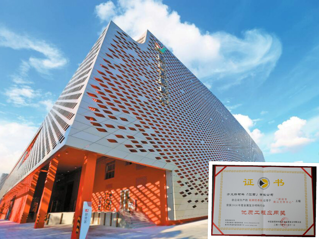 方大氟碳铝单板应用于深圳南山文体中心,荣获2016年度金属复合材料行业“优质工程应用奖”