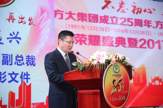 晚会上,集团公司总裁熊建明发表了意气勃发的致辞,他首先向全体方大人表达了最诚挚的新年问候。熊建明总裁强调,方大集团25年来一直坚持“科技为本 创新为源”的经营理念,方大集团25年来的所获得的荣耀和硕果是全体方大人持续共同努力的结果。熊建明总裁鼓舞全体方大人要不忘初心,撸起袖子再干,共同努力,创新进取,顽强拼搏,以“舍我其谁也”的雄心壮志,开创方大下一个更加辉煌灿烂的25年!