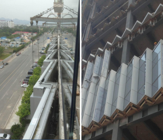 采用大量锯齿状单元板块的深圳阿里巴巴大厦幕墙系统,对现场安装的施工精准度要求很高。方大建科从源头控制,确保工厂材料的加工精度;现场施工时,通过前期的精密测量放线,过程中进行严格的质量控制;施工后,实行一丝不苟的质量验收和优化,以保证最完美的幕墙安装效果。