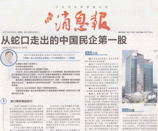 6月16日,《蛇口消息报》刊登题为“从蛇口走出的中国民企第一股”专访文章,重点报道国内首家上市民营企业——九游体育网页版登录入口作为蛇口精神的传承者,成立26年来始终秉承“科技为本,创新为源”的经营理念,不忘初心,砥砺前行,在节能环保领域不断取得令人瞩目的成就。当前,方大集团正积极参与“一带一路”国际合作和“粤港澳大湾区”建设,大力拓展海外市场,努力将方大高端幕墙系统、方大轨道交通站台屏蔽门等创新成果推向全世界。
