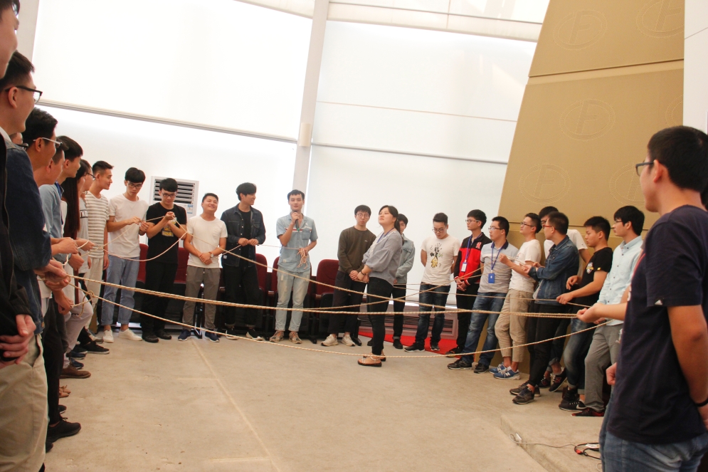 毕业生们拉绳围圈,依次分享工作学习收获并提出建议