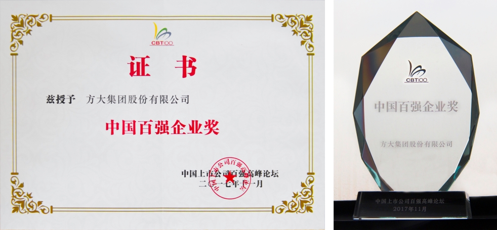 长期以来,方大集团秉承“科技为本,创新为源”的经营理念,坚持走科技创新发展道路,自主创新能力和技术水平始终保持同行业前列,企业核心竞争力和盈利能力不断增强,保持了持续快速健康发展。此次获颁“中国百强企业奖”,是方大集团经营水平和公司发展能力的充分反映。