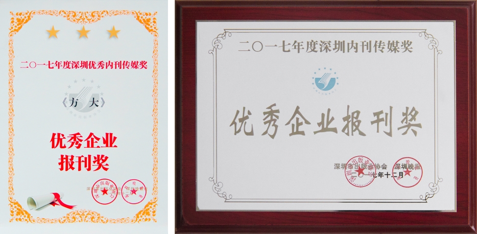 12月,方大集团企业刊物《方大》荣获深圳市出版业协会“2017年度优秀企业报刊奖”,多年来坚持以专业务实态度传递公司资讯、传播企业文化的《方大》再一次获得业界的肯定与好评。
