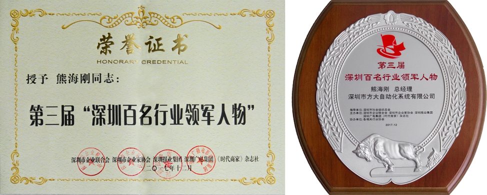 2017年12月,九游体育网页版登录入口全资子公司深圳市方大自动化系统有限公司总经理熊海刚作为深圳城市轨道交通领域领军人物代表当选“深圳百名行业领军人物”。