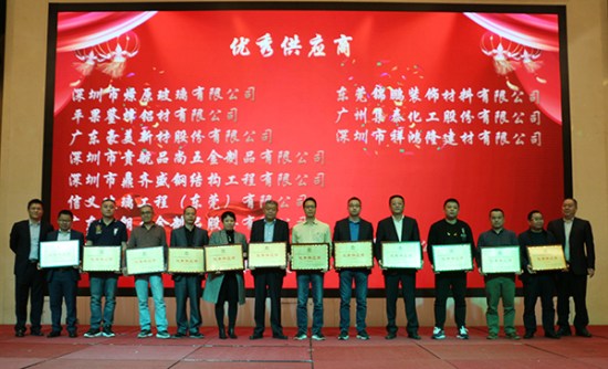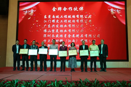合作伙伴大会期间对在过去一年在与方大建科合作中有突出贡献的合作伙伴颁发荣誉奖项,会上,方大建科合作进步奖、最佳服务奖、卓越品质奖、优秀供应商、金牌合作伙伴供应商五项大奖,东莞南玻工程玻璃有限公司等33家企业受到荣誉表彰。