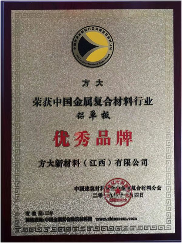 创新是企业的生命线,是企业畅游蓝海市场的无上法宝。此次荣获中国金属复合材料行业铝单板“优秀品牌”称号,是行业对江西新材在技术创新、经营管理、产品质量、品牌影响等多方面的综合肯定,也是江西新材发展的新动力。江西新材将继续秉承“科技为本,创新为源”的经营理念,不断提升在工艺、技术等方面上的自主创新能力,展现方大品牌精益求精的品质追求。