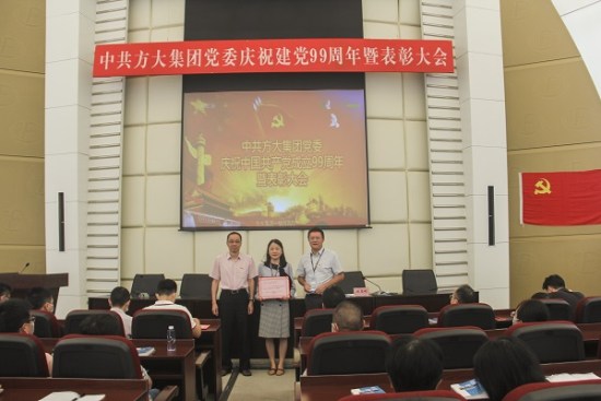 2020年7月1日,中共方大集团党委庆祝中国共产党成立99周年暨表彰大会在深圳方大大厦报告厅召开。会议对方大集团先进党组织、优秀共产党员、优秀党务工作者进行表彰,并组织预备党员进行入党宣誓。方大集团党委书记魏越兴出席会议并讲话,会议由党委委员、纪委书记周志刚主持,驻深企业全体党员、驻外受表彰的先进党组织负责人代表、优秀共产党员、入党积极分子参加会议。