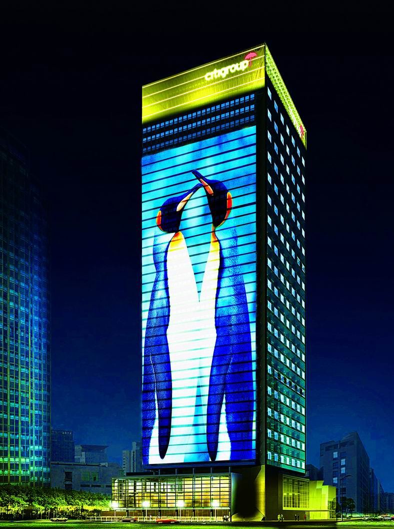 方大承建的全球最大LED全彩显示屏----上海花旗银行大厦LED彩显幕墙